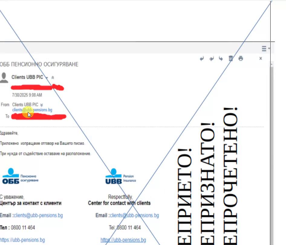 Пояснение за аудиторията защо ймеила не бе признат, и върнат