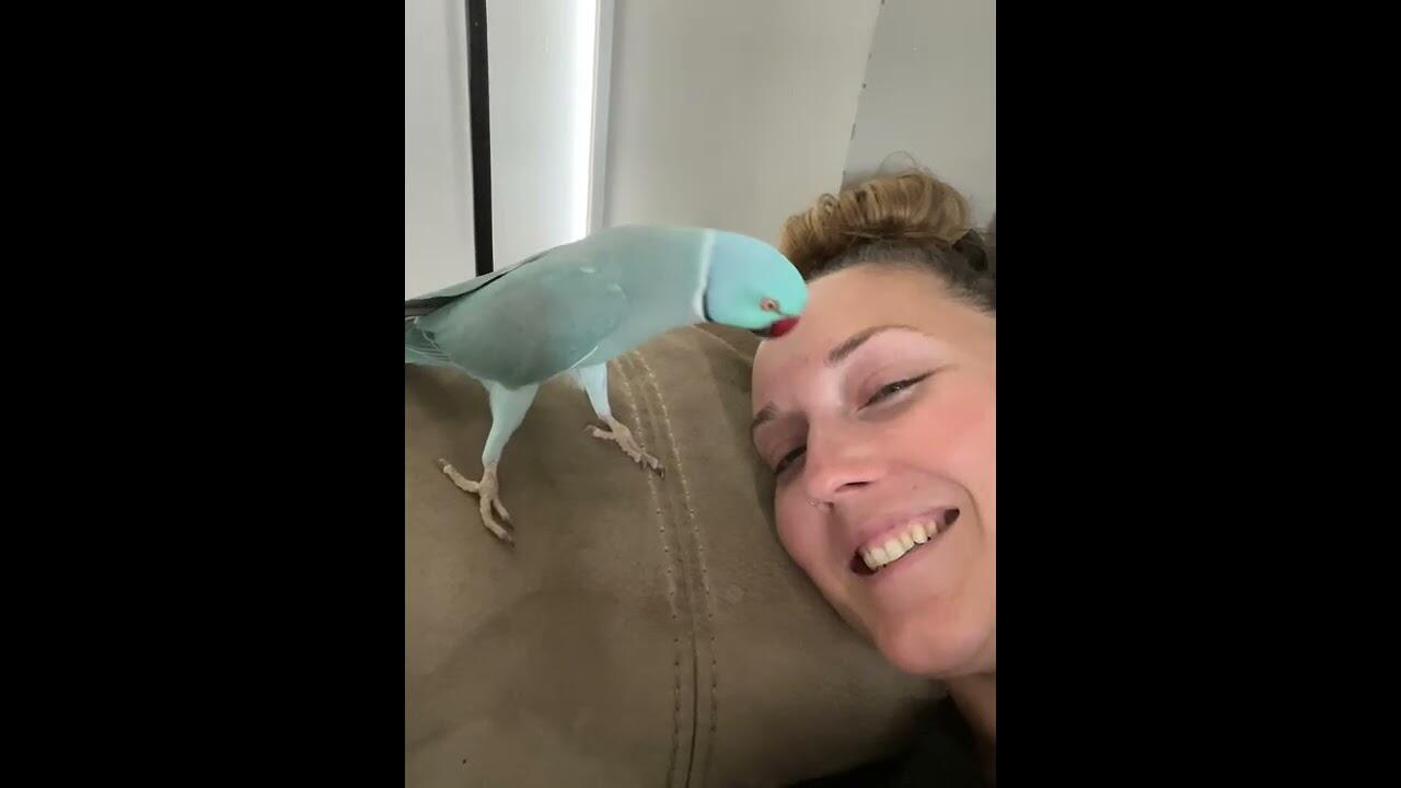 Kiwi The Blue Chicken Loves to kiss and lick my lashes when I don't expect it. If I close my eyes he waddles so fast to me to ensure I stay awake and pay attention to him!