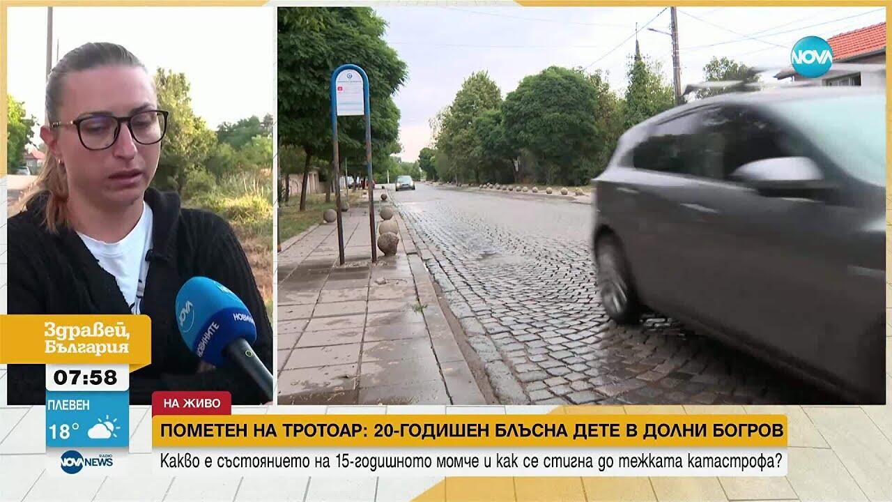 15-годишно момче беше блъснато от автомобил, докато вървяло по тротоар в софийското село Долни Богров. Инцидентът е отпреди седмица, но близките му разказват за него сега, след като животът на детето вече е вън от опасност.