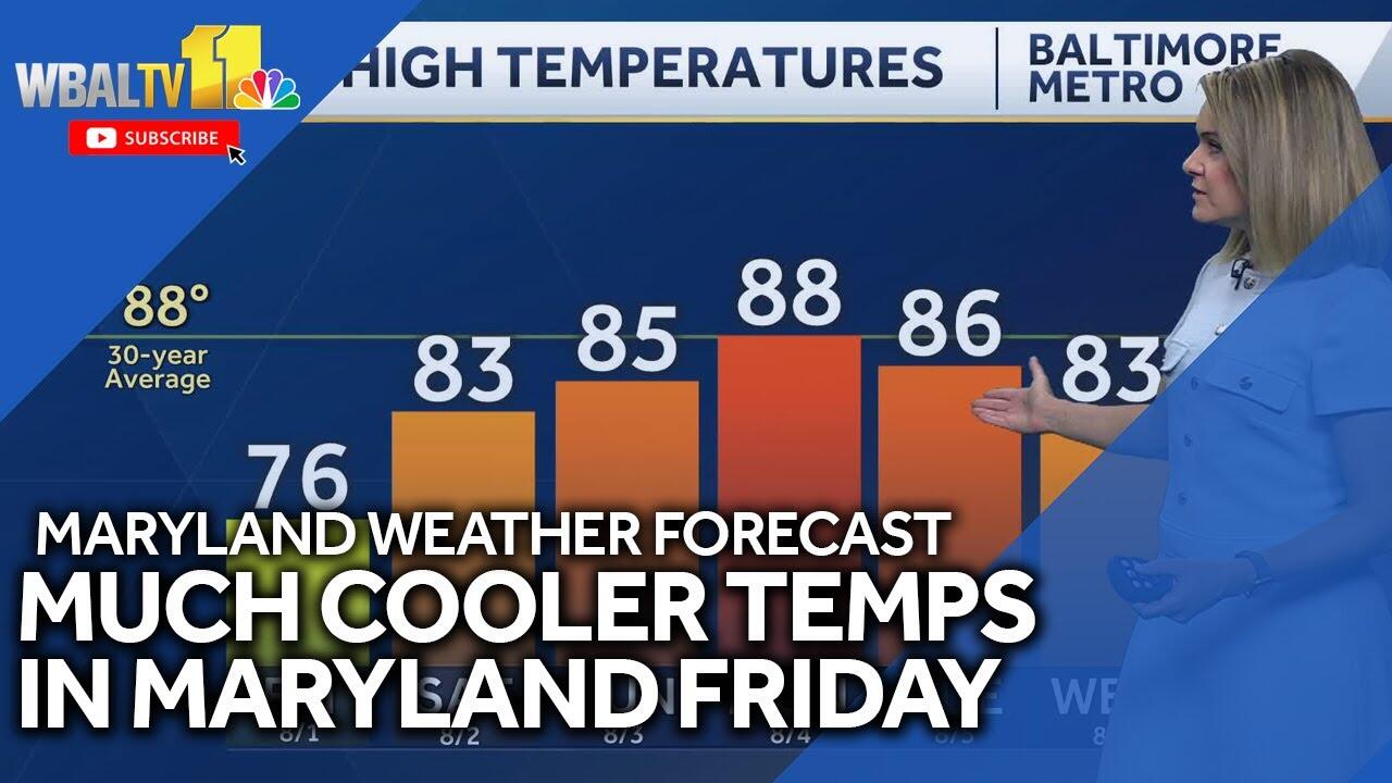 Meteorologist Ava Marie says it will be mostly cloudy, cooler and humid Friday with highs only in the mid 70s Friday. There will be times of drizzle and light rain before noon, then isolated showers are possible. The weekend will be pleasant with clear skies and comfortable temps in the mid 80s. The nice conditions will hang around for most of next week with some chances for showers.