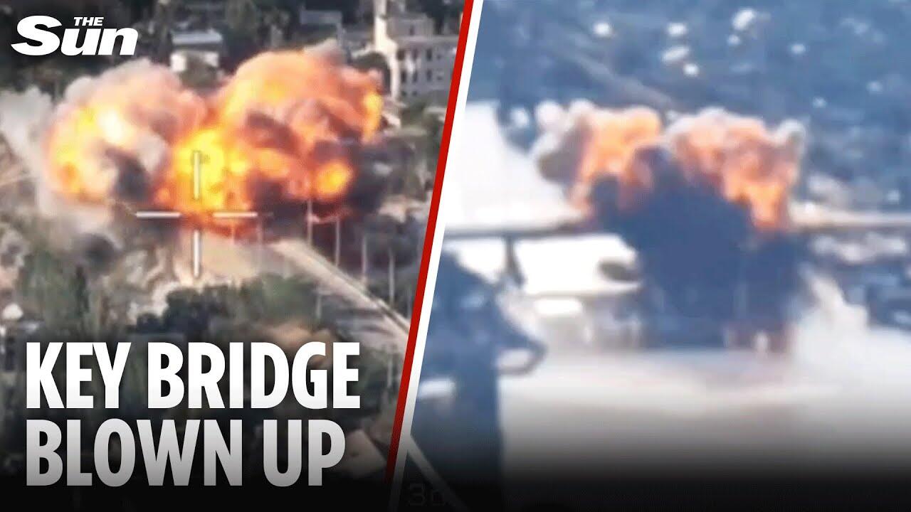 Footage released by the Kherson Regional shows multiple Russian KAB strikes on a bridge in Kherson