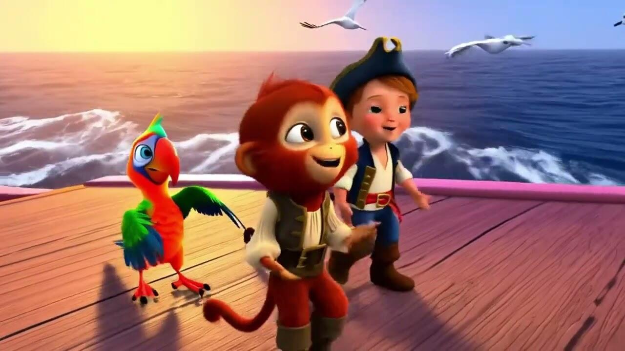 Забавна и приключенска детска песничка за малкия пират, неговия верен папагал Роко и игривата маймунка Кики, които маршируват по палубата и покоряват моретата с песни и смях! 🎵⚓✨