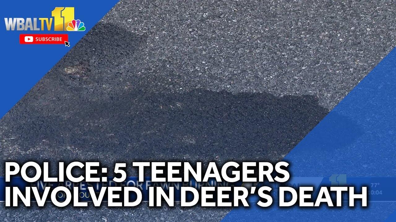 Three juveniles were charged and two adults were arrested after a deer was found dead and severely burned with ropes tied around its neck, police said. The deer was found lying in a Perry Hall street in the Forge Heights community on July 24.