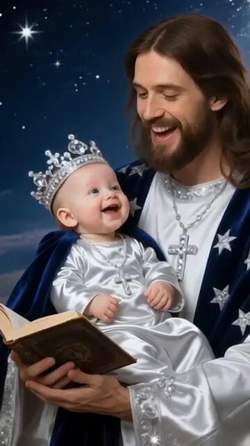 Jesus and a Baby Sing in Glowing White Garments