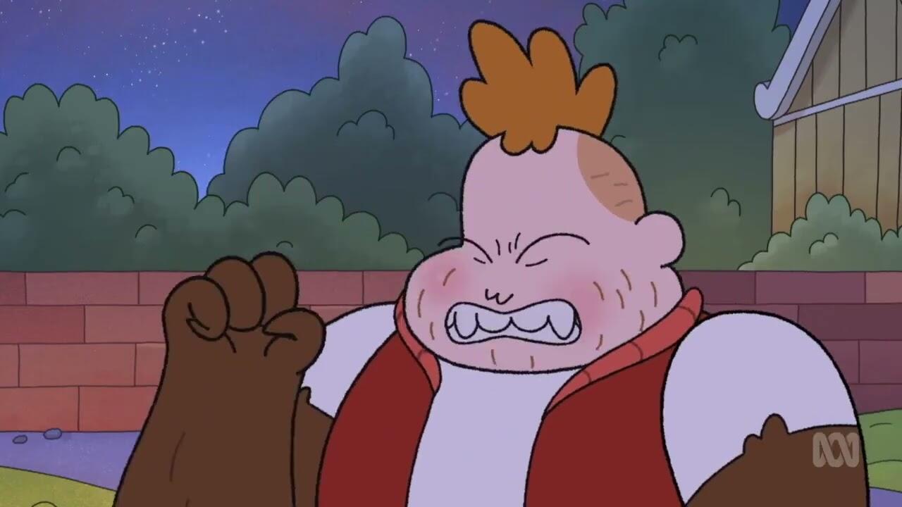 Scenes from the Strange Chores episode "Lock Up the Wolfman" where Pierce gets bitten by said Wolfman but turns into an even bigger, bulkier werewolf than anyone else in the series.
