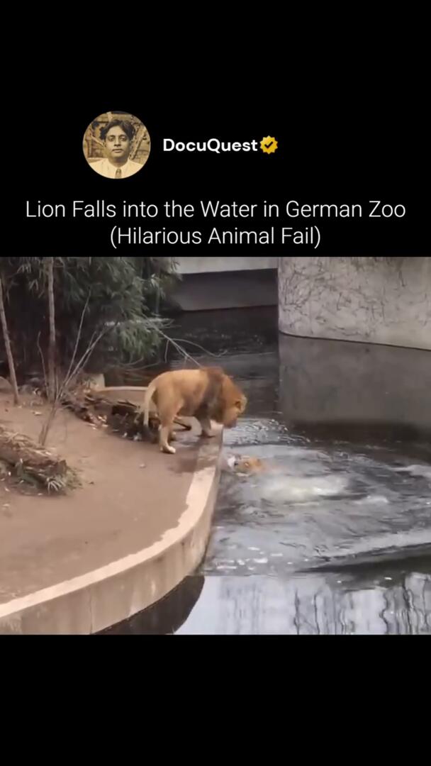 Лъв се подхлъзва и пада във водата СМЯХ