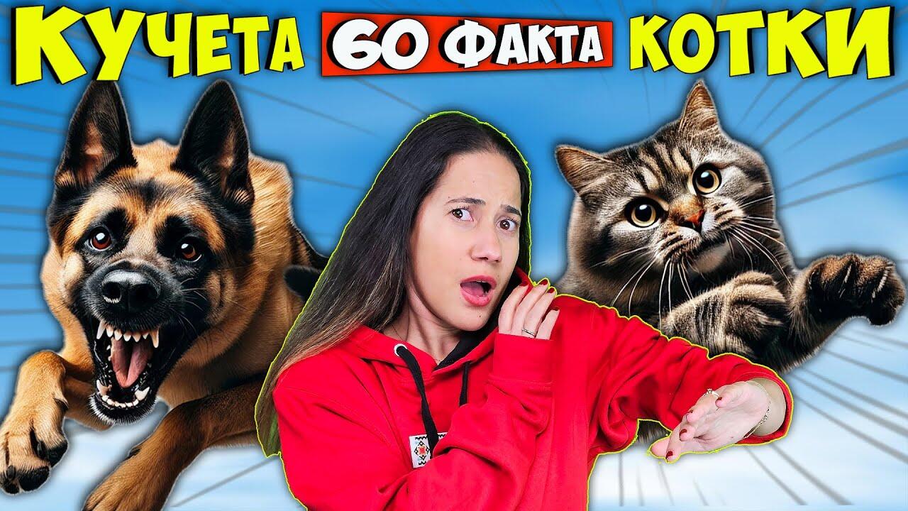 Новото ни айде бг видео е малко по-различно от останалите. Този път вместо топ 10 класация, сме ви приготвили 60 невероятни факта за едни от любимите животни на всички, а именно куче и котка! Каква скорост могат да развиват, кои са най-големите и най-малките кучета и котки на света и как виждат в тъмното. Това са само малка част от изумителните факти, които ще научите!