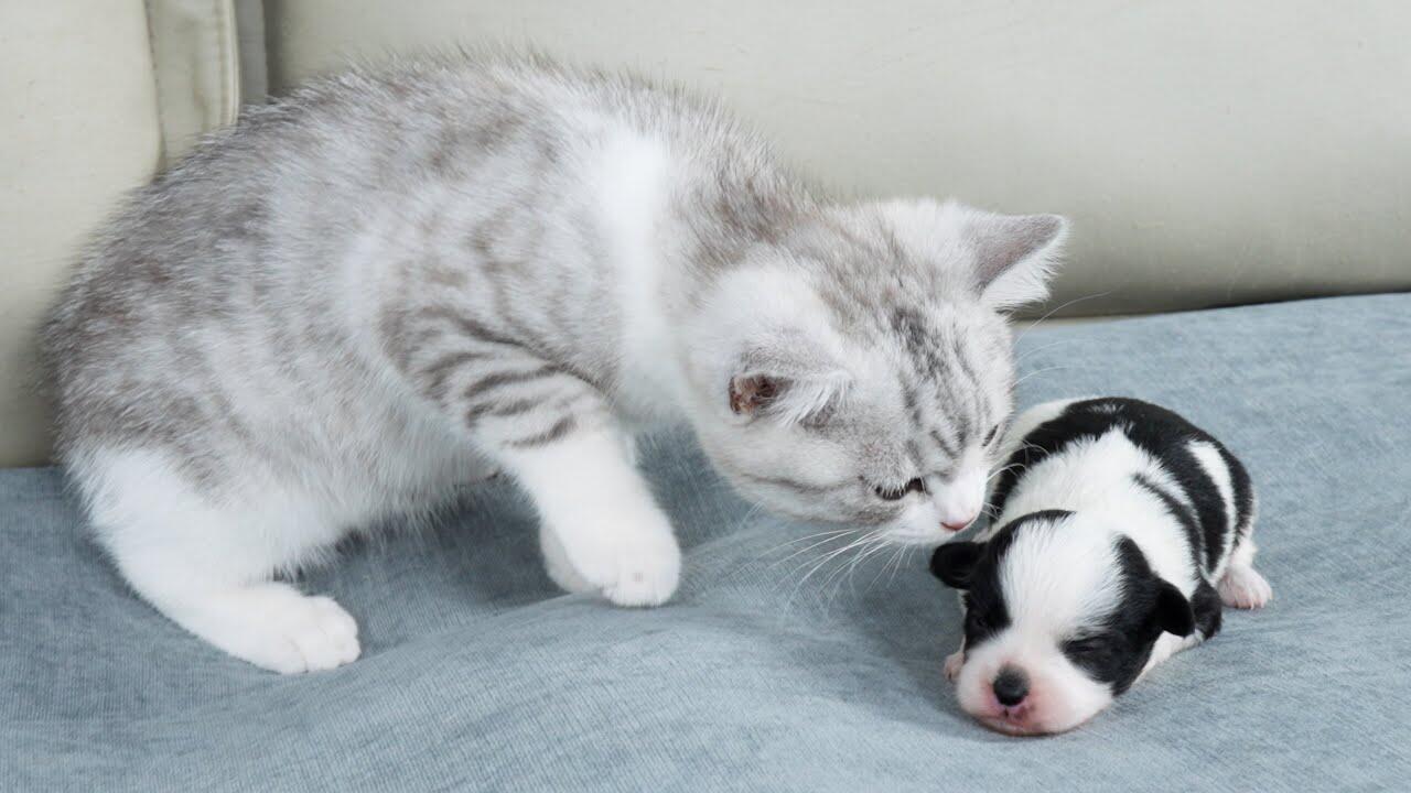 Kitten's Reaction To Seeing Newborn Puppy For The First Time Is Heartwarming#kitten #puppy #dog