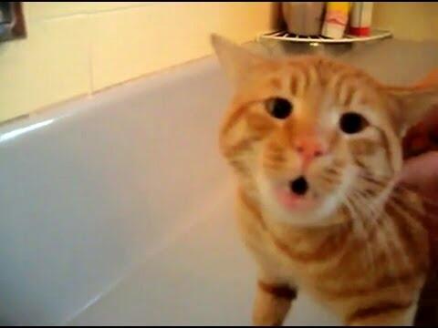 My cat Tigger's first bath. He didn't like it much, he's screaming "nooooo!" the whole time. FOR THE RECORD: This bath was absolutely necessary. At the time of the bath, Tigger was really dirty to the point that he was leaving traces of dirt and stains all over my bed, his bed, and the dog's bed (he loves to roll in the dirt with my dog and lay under cars with the neighbor's cat!). You may think cats are clean animals, and don't need baths, but Tigger really doesn't spend much time grooming himself for some reason. I decided to give him the bath this day because he came in with a couple car oil stains on his back which he was unable to clean himself, nor would it have been healthy for him to lick the chemicals off. He may not have been happy about the bath, but it was for his own good. We decided to film it because as soon as I started running the water, Tigger started making funny odd noises we had never heard, so we just thought maybe we should capture it! He is perfectly fine and was back to his usual self 5 minutes after the bath. No harm done! Tigger is a happy, healthy, spoiled, well-loved kitty!