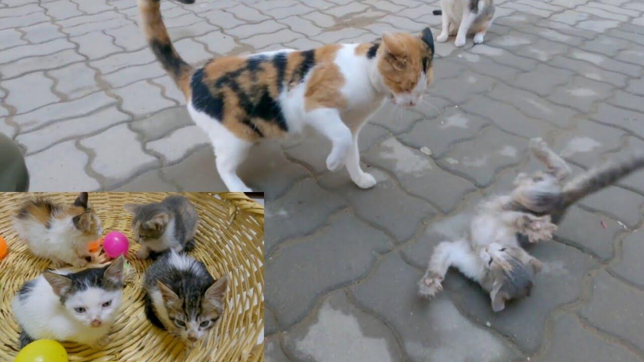 Kitten being brutally beaten by stray calico cats || I saved the kitten.