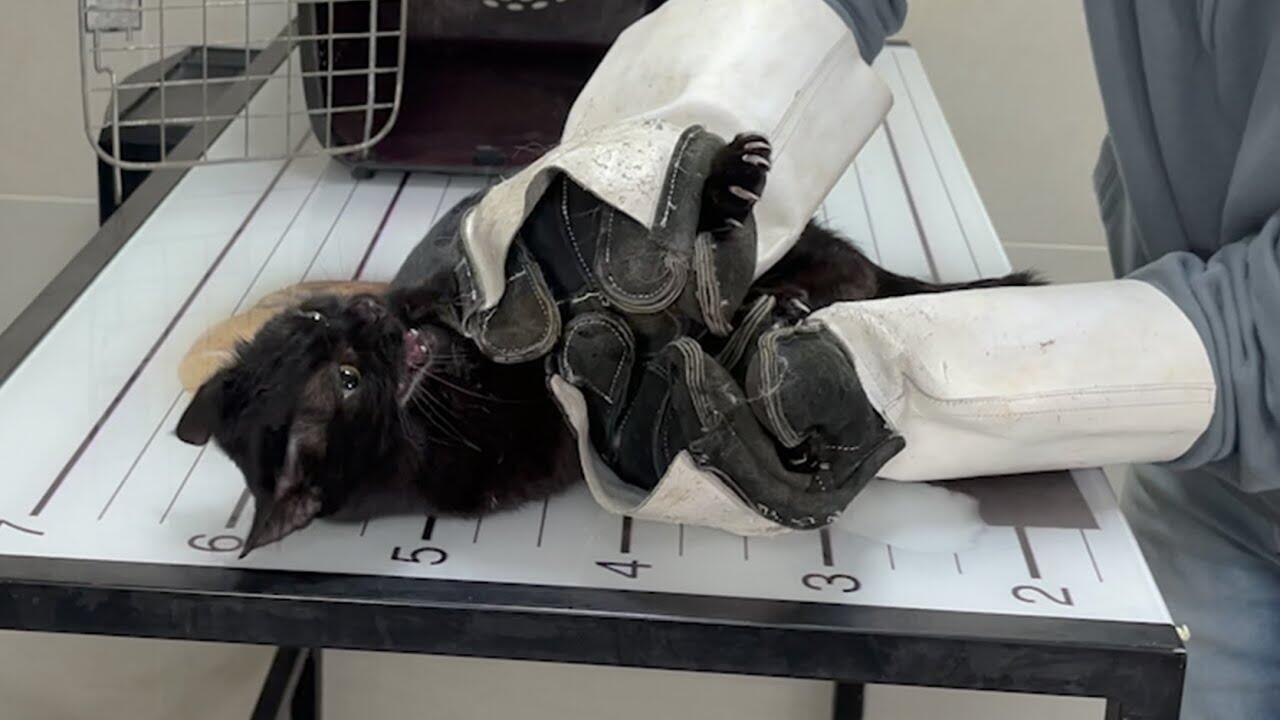 Ninja angora black cat fighting the vet ☠️ 😱