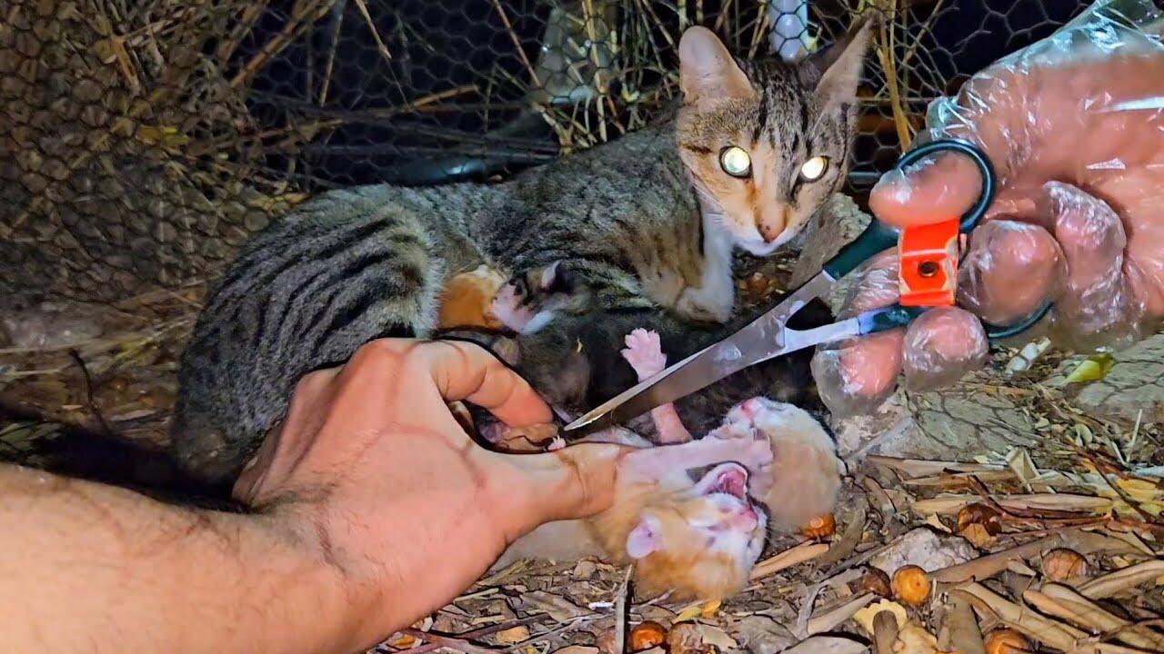 Mother cat calls for help, the newborn kittens crying, episode 1 .