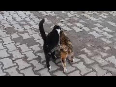 Two male cat rejecting same female cat in heat but female cat doesn't give up, she try to catch them.
