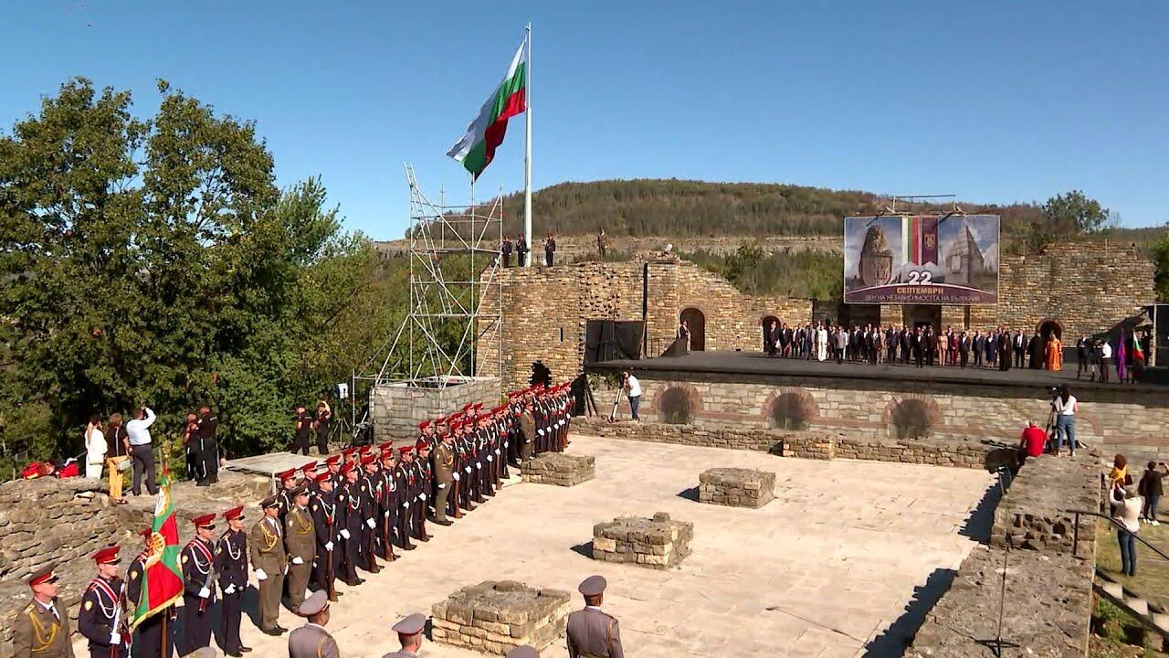 Националният трибагреник се развя над хълма Царевец във Велико Търново като част от кулминацията на тържествата по повод 117 години от обявяването на Независимостта на България, предаде кореспондентът на БГНЕС от старата столица.