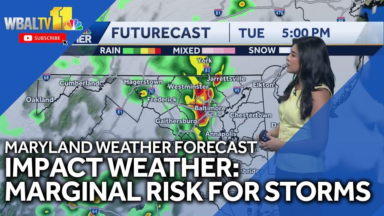 Meteorologist Alena Lee marginal risk for severe weather with possibility for scattered thunderstorms Tuesday afternoon.