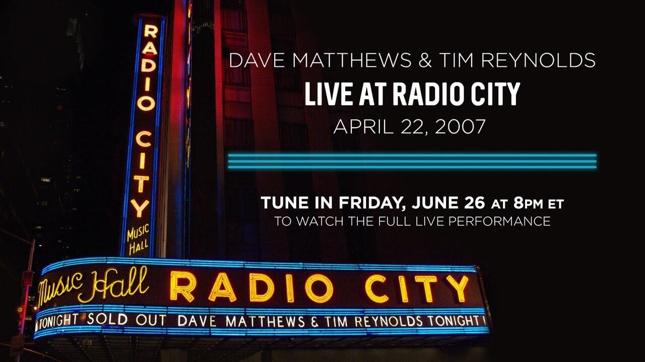 This Friday June 26, we will be teaming up with our friends at Radio City to stream Dave and Tim recorded live on Radio City Music Hall’s magnificent stage on April 22, 2007. The 26 song set was recorded in HiDef and directed by longtime DMB friend, Sam Erickson, and our own Fenton Williams. It is the only Dave and Tim full length concert video to be released to date.