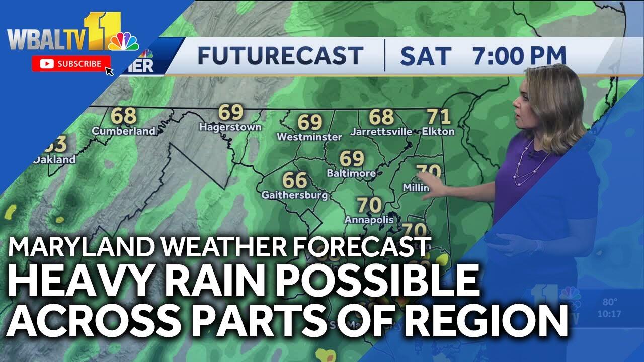 Saturday will be an Impact Weather Day as low pressure moves along a front to the south of the Baltimore region. Meteorologist Ava Marie said the day will start out cloudy but dry and temperatures will climb from the 60s into the low-70s. Any showers that develop in the morning will likely be light and spotty.