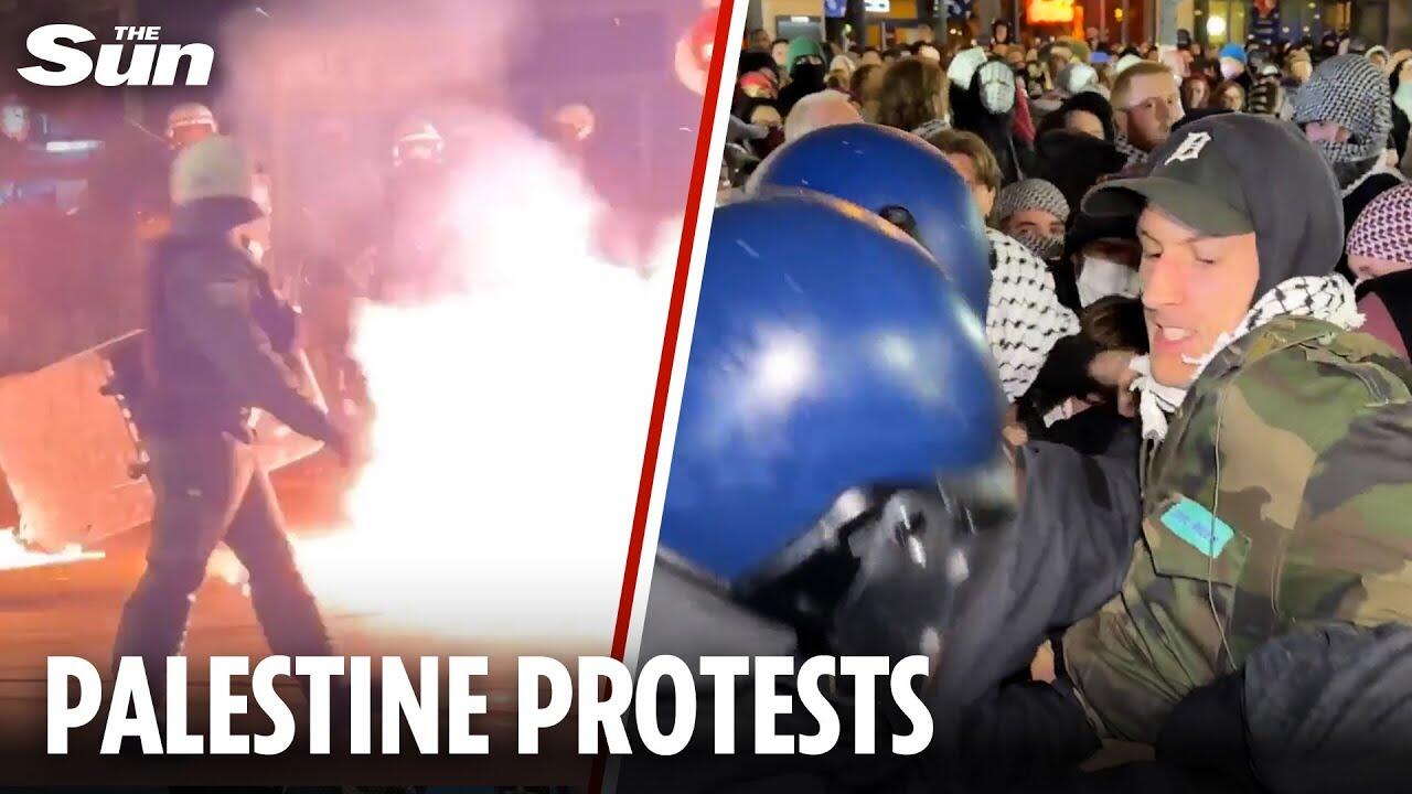 Clashes broke out between police and protesters as controversial pro-Palestinian demonstrations were held on October 7 in cities around the world.