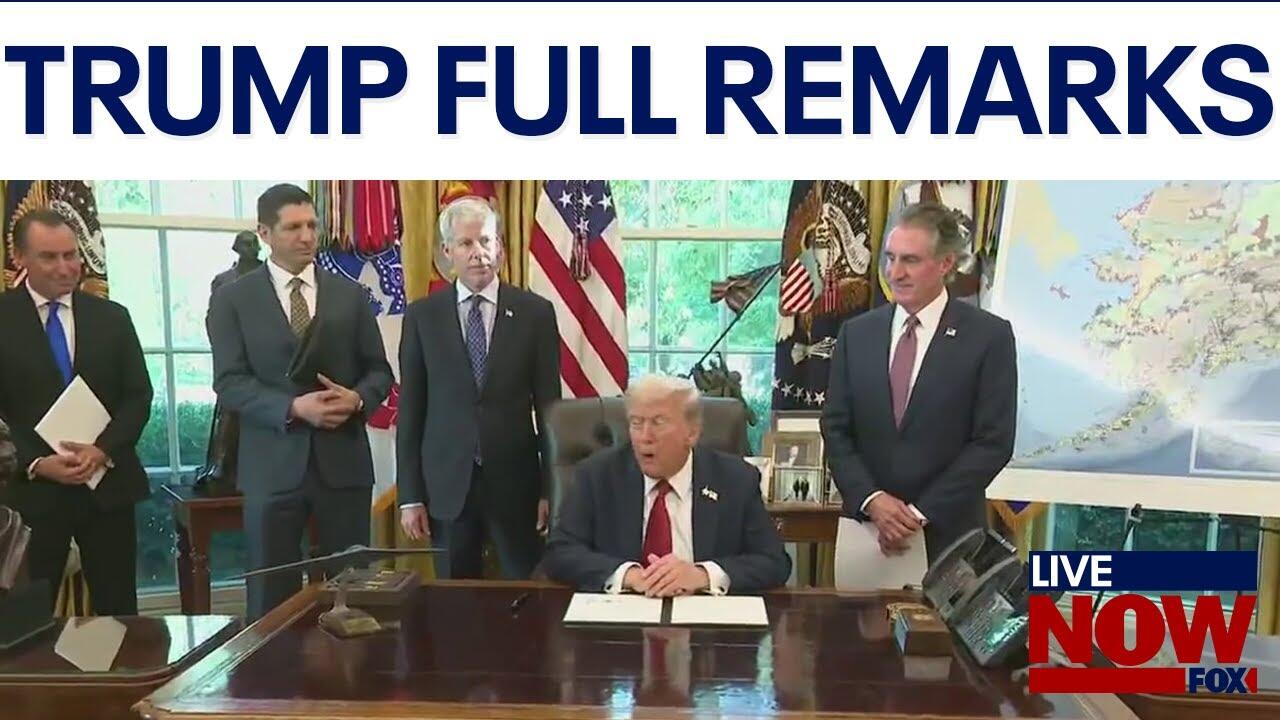 President Donald Trump delivered remarks from the Oval Office on Monday. Trump discussed Alaska minerals with his Energy Secretary Chris Wright.