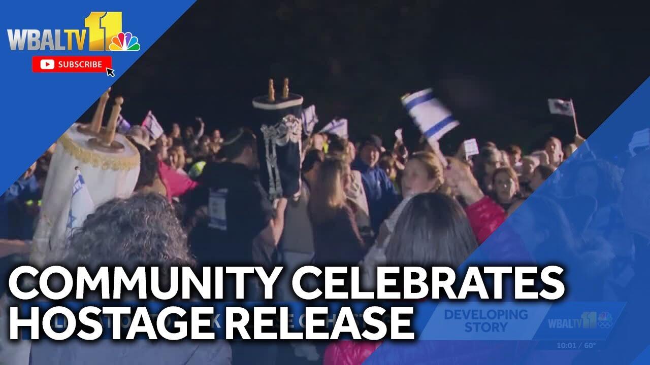 Members of Baltimore's Jewish community gathered in Pikesville Tuesday night to celebrate the release of the remaining living hostages held by Hamas. It marks a moment of healing after two years of struggle, members said.
