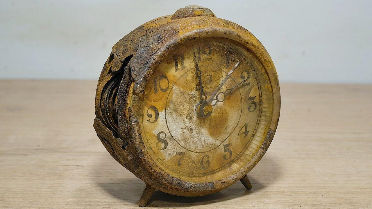 I started the restoration work by cleaning the clockwork, and with the help of citric acid and an ultrasonic bath, I managed to completely clean the rust. Part of the missing hull has also been restored. It took me 7 days to fully restore this alarm clock.