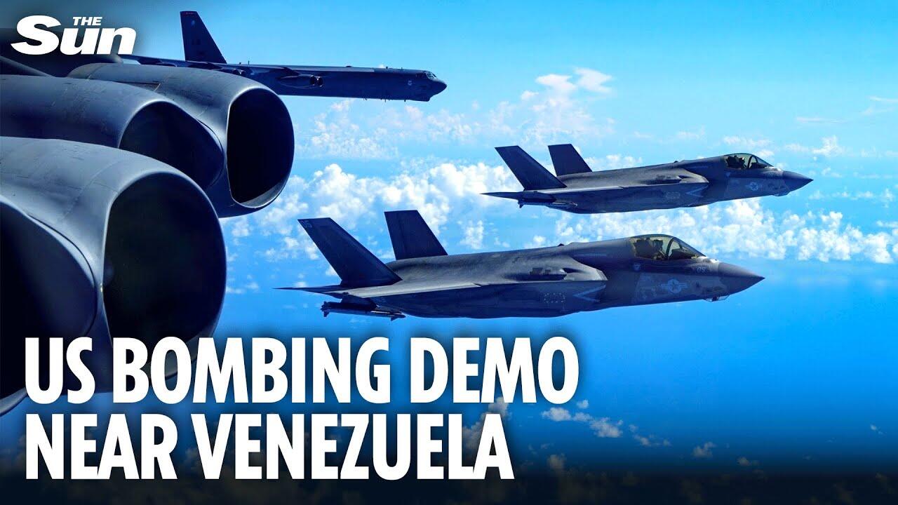 DONALD Trump’s menacing B-52s flew alongside Marine Corps F-35s in a daring “bomber attack demo” near Venezuela.