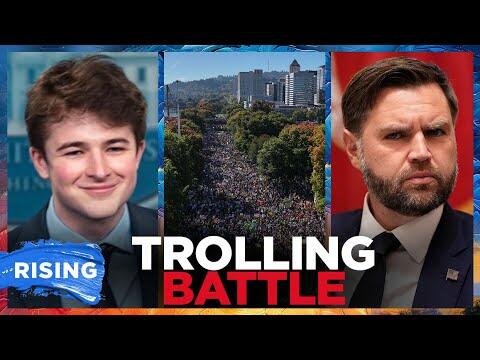 The Trump Administration responds to the record-breaking, 7-million-person nationwide "No Kings" protests over the weekend with AI-Generated videos trolling the protesters and painting Trump as a king. #NoKings #Trump #AI