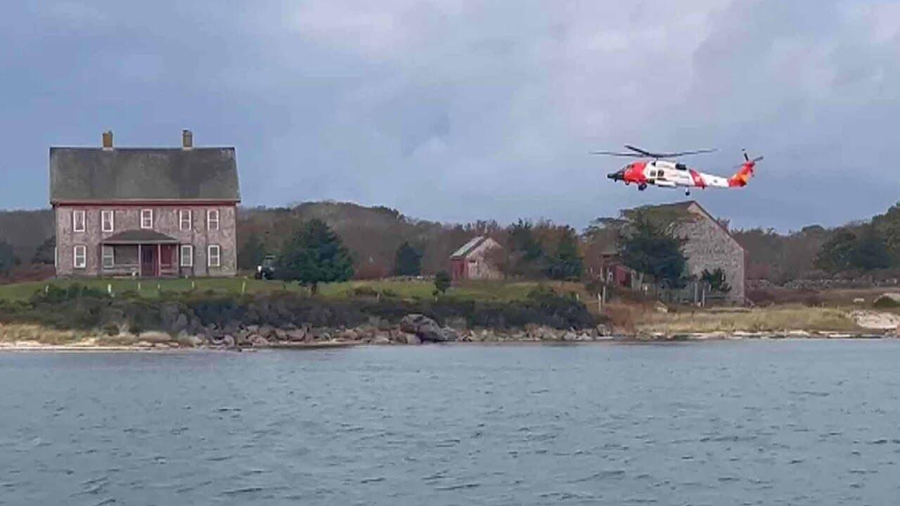 Patrick Sullivan, his wife Cynthia, and their son Tyler sailed from Cape Cod last weekend and anchored off the coast on Naushon Island. They were woken up by their dog warning them of a fire on board their boat. They leapt into the water and swam to a cove on a little-known island. The dog died after saving the family. Tyler found the boat's radio washed up on the beach and shouted "Mayday!" They were rescued by the Coast Guard and medevaced to a hospital.