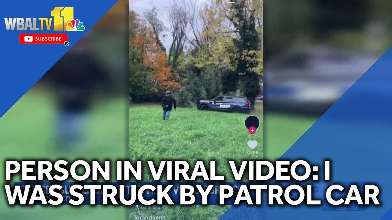 Baltimore police are investigating a viral video and suspended an officer after a man said he was struck by the patrol car. WBAL-TV 11 News spoke exclusively with the man who recorded the video and the man at the center of the video that prompted BPD to start an internal affairs investigation into the officer's actions. The video from Tuesday night shows an officer in a marked patrol car chasing a person on foot.