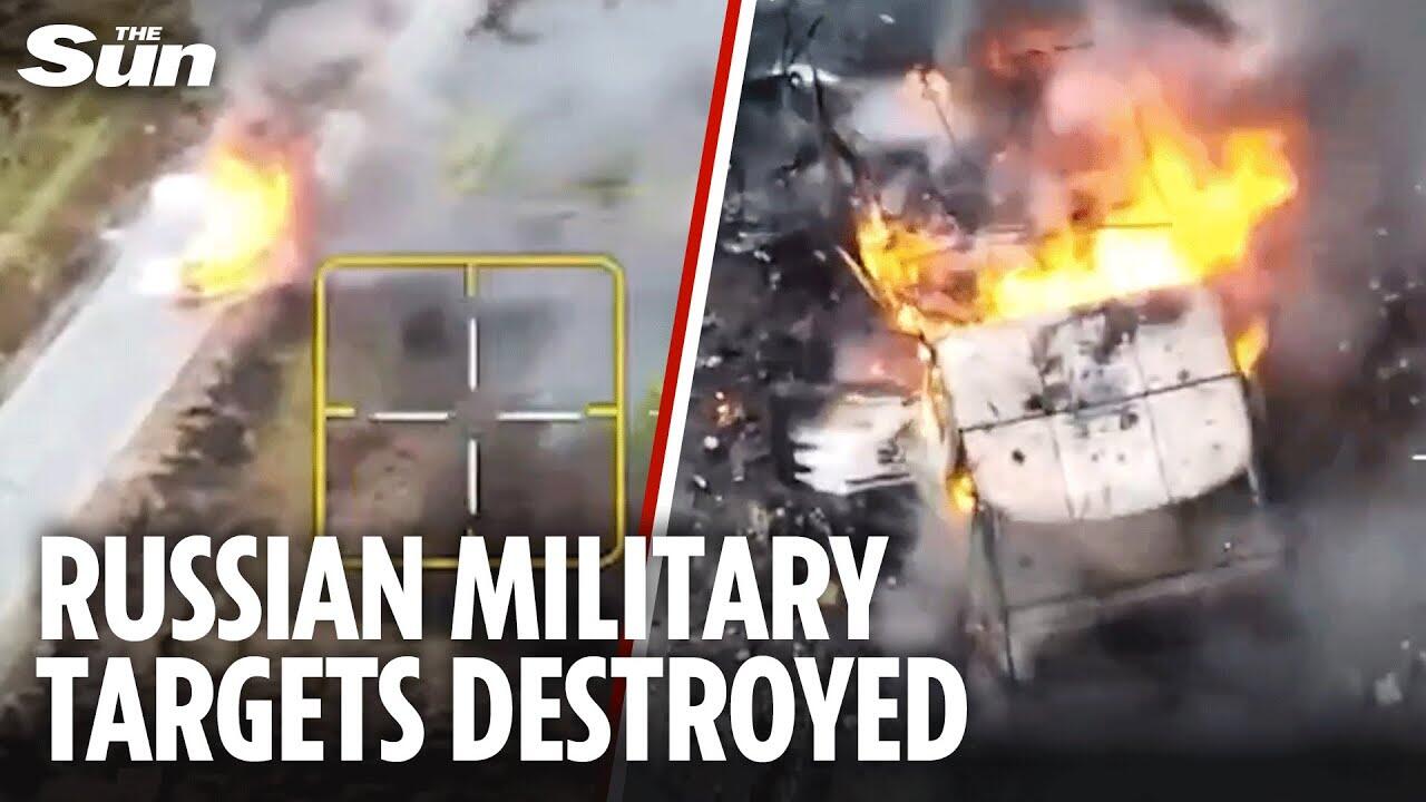 Footage shows the moment Ukrainian border guards destroyed three Russian electronic warfare vehicles in Donetsk, Ukraine