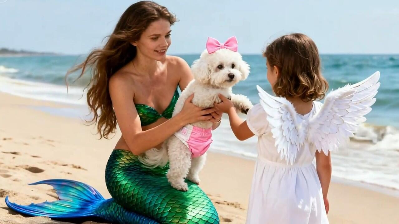 Friendship between a puppy🐶 and a mermaid💖!