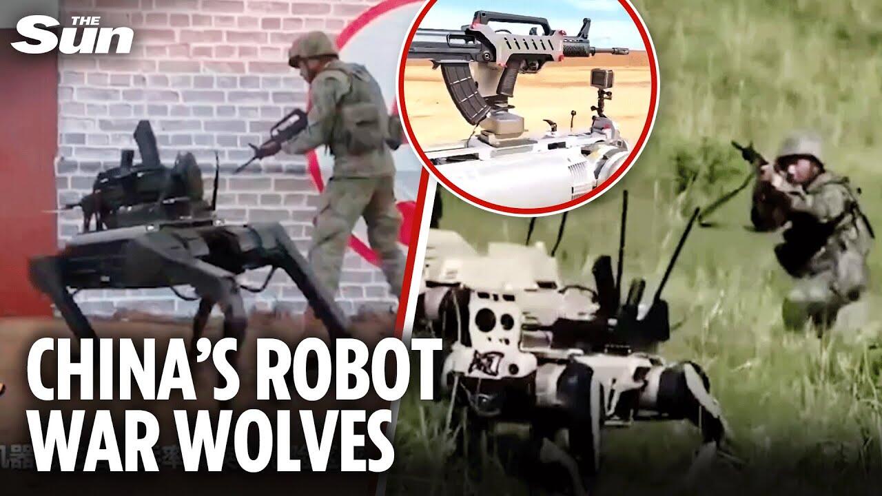 THIS is the terrifying moment a pack of bloodthirsty robo-wolves storm a battlefield – as China readies its forces for an all-out invasion of Taiwan.
