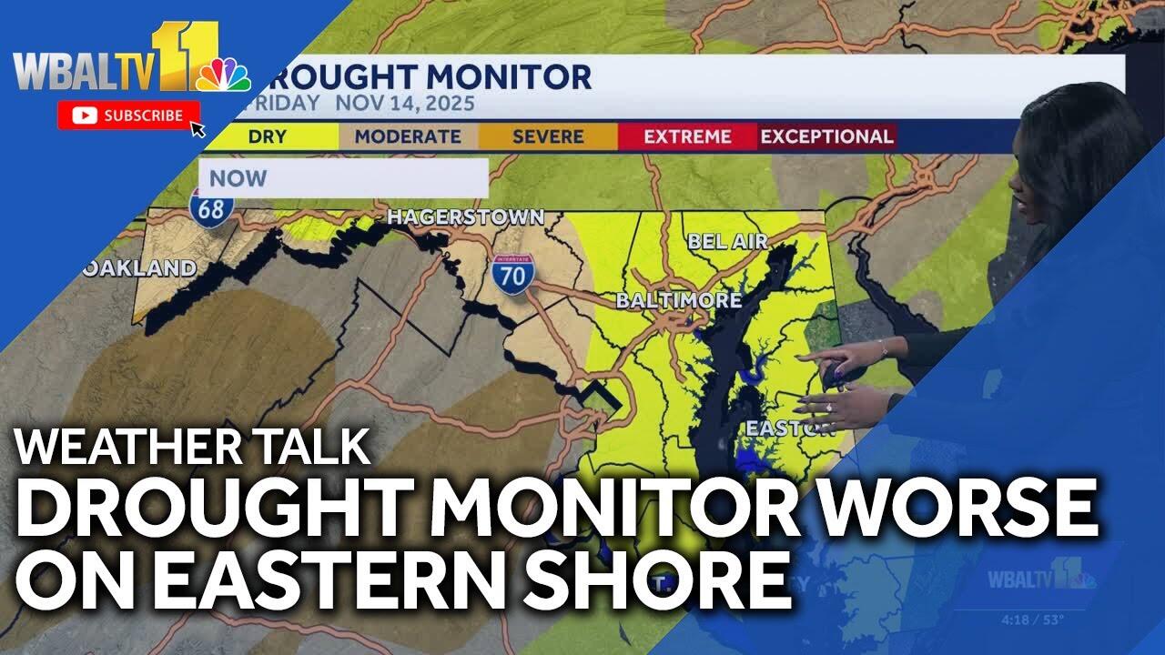 The Baltimore region saw little change in the state's drought monitor last week. However, the monitor worsened for parts of the Eastern Shore as some spots became marked "Abnormally dry." The update comes after Thursday's elevated wildfire risk, driven by a dry ground and gusty winds.