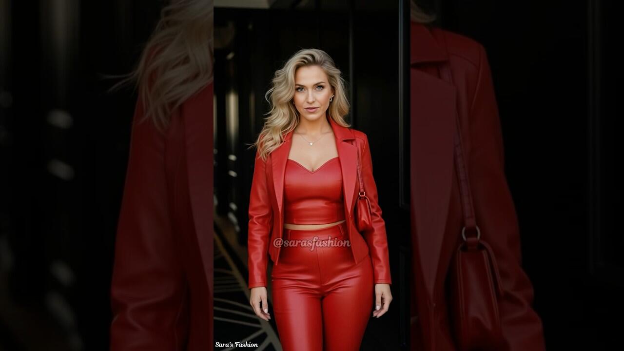 What makes this red leather set a complete game-changer is the balance of structure, shine, and confidence. The matching blazer, bustier, and pants create one continuous line of bold color, giving the outfit instant impact without needing any extras. The glossy texture catches the light, the tailored fit sharpens the silhouette, and the monochrome styling pulls everything together into a look that feels powerful, polished, and impossible to ignore. This is the kind of outfit that doesn’t just stand out—it elevates your entire presence
