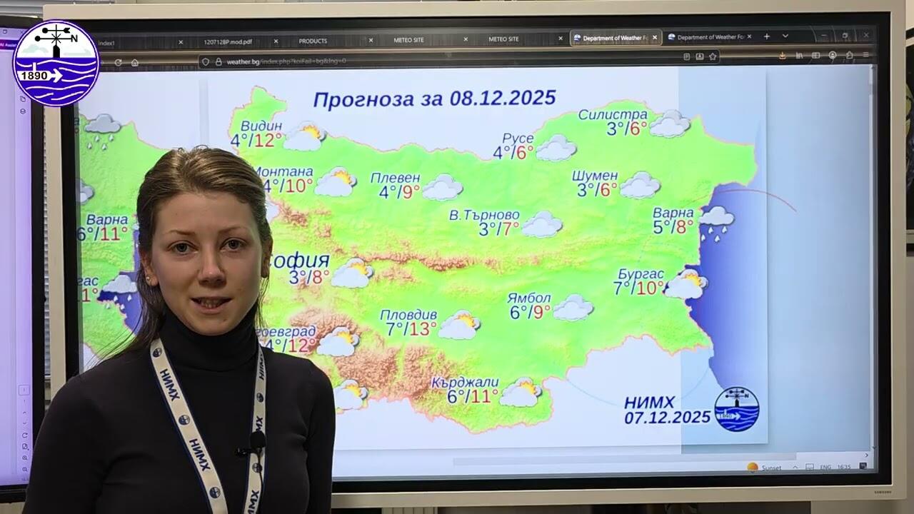 Вечерен метеорологичен бюлетин на НИМХ, 7.12.2025 г.