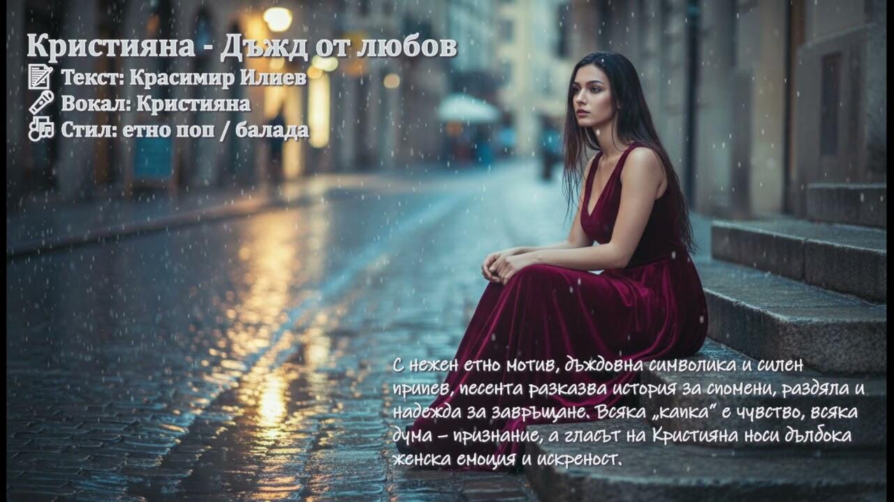 С нежен етно мотив, дъждовна символика и силен припев, песента разказва история за спомени, раздяла и надежда за завръщане. Всяка „капка“ е чувство, всяка дума – признание, а гласът на Кристияна носи дълбока женска емоция и искреност.