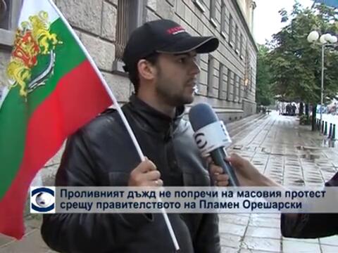 За 16-и пореден ден продължават протестите против кабинета „Орешарски” в страната. Стотици се събраха в столицата, въпреки дъжда. „Оставка”, „Мафия” и „Долу БСП” отново озвучиха центъра на София. Именно заради лошото време не се очаква протестът да е толк