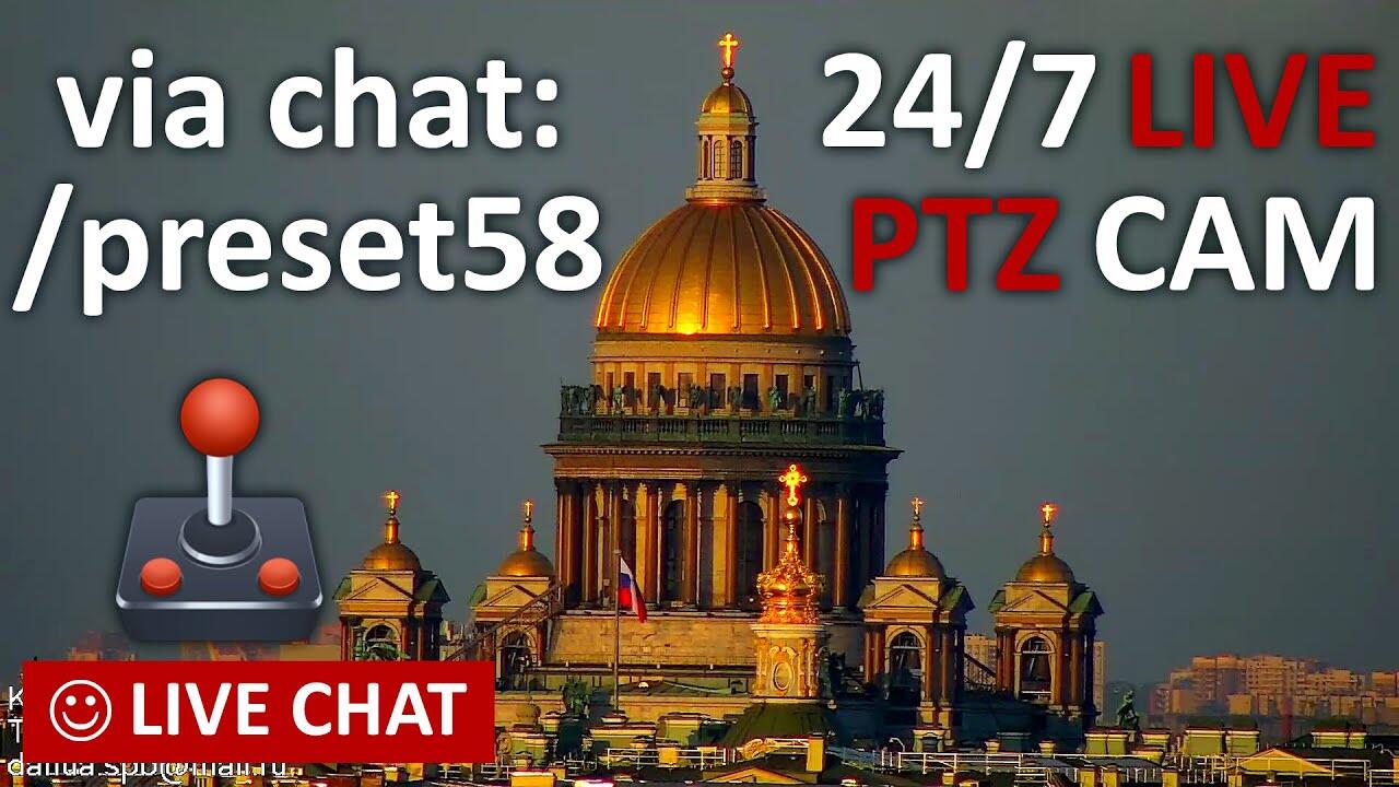 PTZ web-camera with real sound in St. Petersburg. Russia live interactive camera with powerful zoom. Camera control available via YouTube chat.