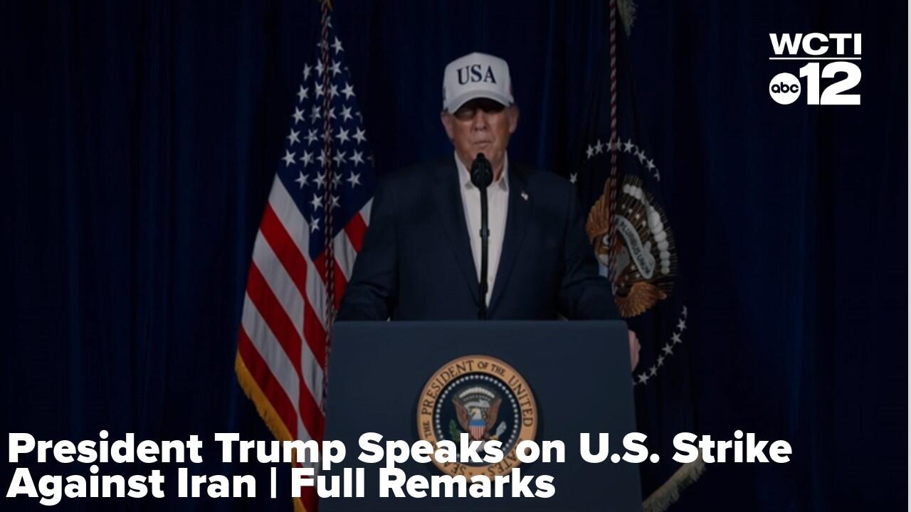 President Donald Trump delivers extended remarks following U.S. military action involving Iran amid escalating tensions in the Middle East.