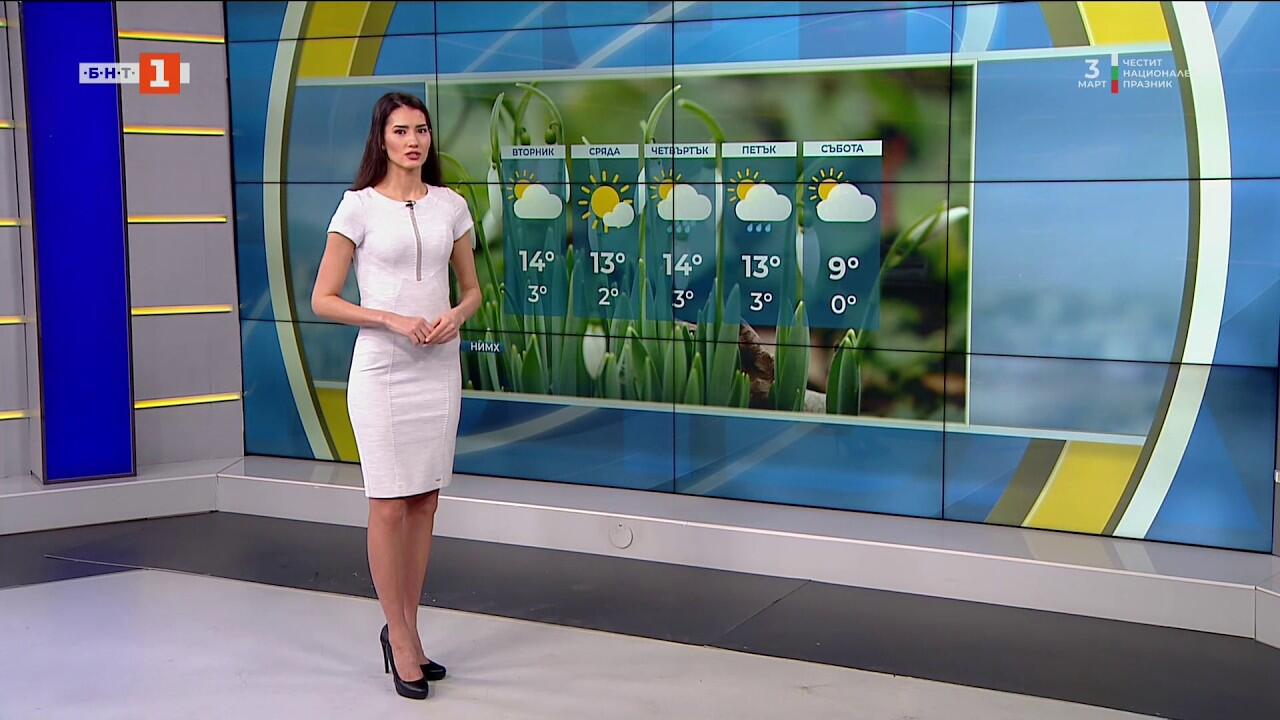 И през следващите дни ще остане сравнително топло за месец март с минимални температури между 0° и 5° и максимални - между 12° и 17°. В сряда времето ще бъде предимно слънчево. Вятърът ще е слаб от юг. Към края на деня от югозапад ще започне увеличение на високата облачност.