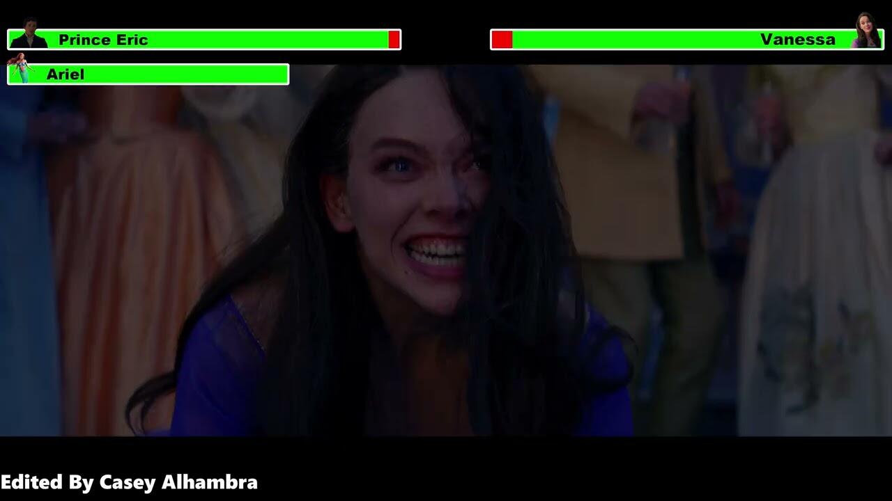 Ariel and her friends discover that Eric will be announcing his engagement to "Vanessa" (Ursula's alter ego) later that day. Ariel rushes to the engagement party, confronts Ursula, and breaks the shell. She gains back her voice, and the enchantment on Eric is broken. However, before they can kiss, the sun sets and Ariel transforms back into a mermaid. Reverting to her original form, Ursula drags Ariel back into the ocean.