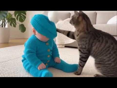 ♥️ Title: COOL PEAS - Funniest Baby And Cat Are Best Friends - Funny Baby and Pets