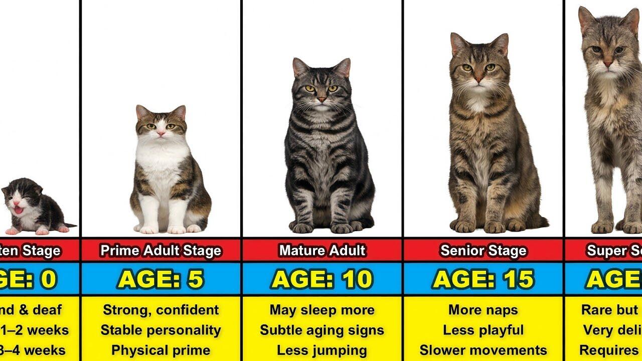 Watch this heartwarming journey as we follow a cat’s incredible transformation from a tiny newborn kitten to a wise 20-year-old senior. 💛 From playful baby days and curious teenage moments to calm, loving golden years — this video captures every beautiful stage of life.