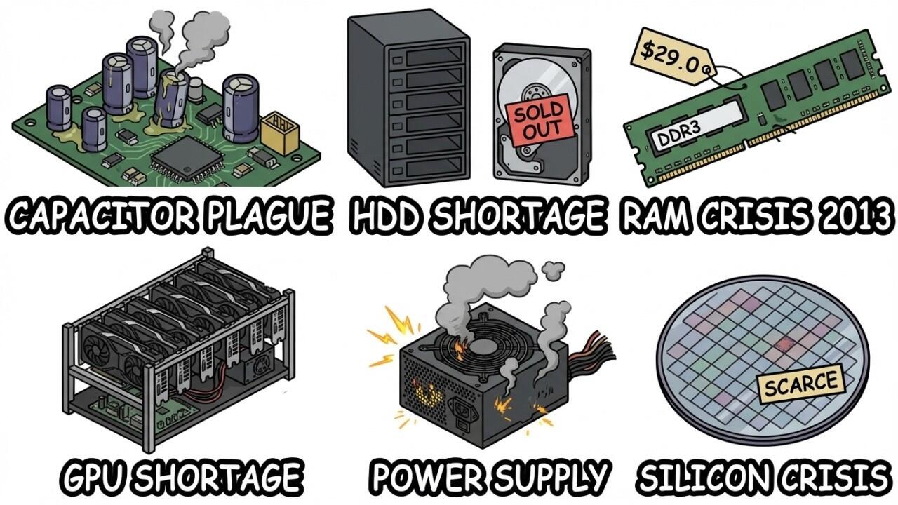 PC hardware isn’t always easy to get — and sometimes, it completely disappears. From the GPU shortage that made graphics cards insanely expensive, to the RAM crisis that drove up memory prices, the HDD shortage caused by global supply shocks, and even PSU shortages affecting full builds — the PC industry has faced multiple major crises. In this video, we break down the biggest hardware shortages that hit gamers and PC builders, what caused them, and how they changed the market forever.
