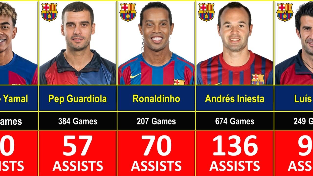 Lionel Messi, Luis Suarez, Dani Alves, Xavi Hernandez, Andres Iniesta, Neymar Jr, FC Barcelona, Barca, Most Assists in Barcelona History, Barcelona All Time Assists, Barcelona Legends, La Liga, Football Records, Soccer Stats, Playmaker, Passing Skills, Football Highlights, Barca Fans, Visca el Barca, Best Assists, Football History, Soccer Highlights, Barcelona 2026, Messi Assists, Xavi Vision, Luis Suarez Barcelona, soccer, footballuvs, Lamine Yamal, Lamine Yamal Assists, Yamal Assists, football, soccer