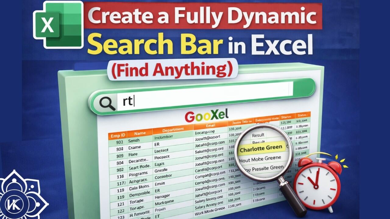 In this tutorial, you’ll create a smart search tool that can instantly find data across multiple columns like Name, Department, Location, Email, Job Title, and more — all without using VBA or macros!