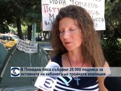 20 000 подписа събраха пловдивските протестиращи срещу правителството на БСП, ДПС и "Атака" и назначението на Венцислав Каймаканов за областен управител. Подписката се събира от средата на юни и сега беше внесена в областната администрация. За пореден път
