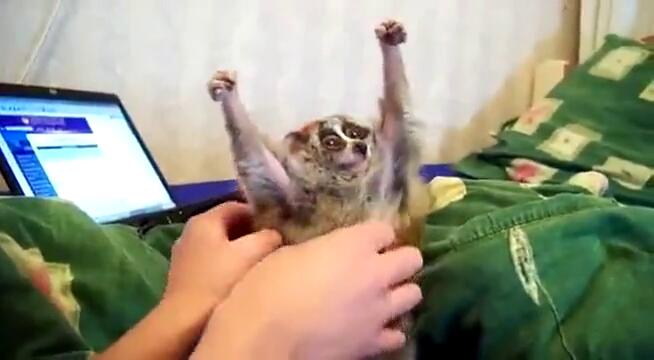 Сладък лемур обича да бъде гъделичкан