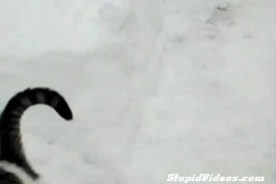 Котенце се крие в снега