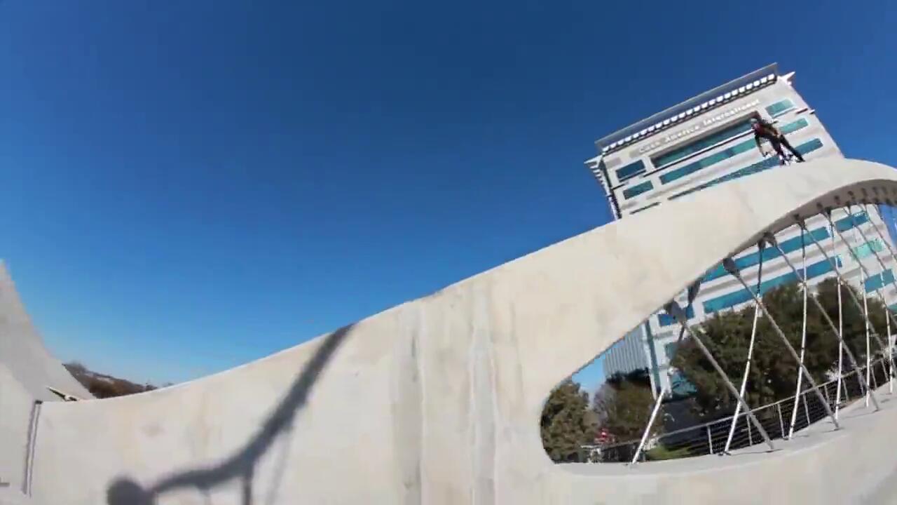 Мат Олсън кара върху арките на мост в Тексас